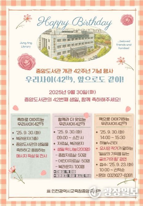 광장일보 주재영 기자 | 인천광역시교육청중앙도서관은 개관 42주년을 맞아 9월 30일에 기념행사를 개최한다.