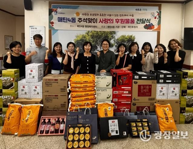 광장일보 나학천 기자 | 수원시 영통구 매탄4동 행정복지센터는 민족 고유 명절인 추석을 맞아 관내 어려운 이웃에게 따뜻한 마음을 전하는 ‘추석맞이 사랑의 후원물품 전달식'을 개최했다.