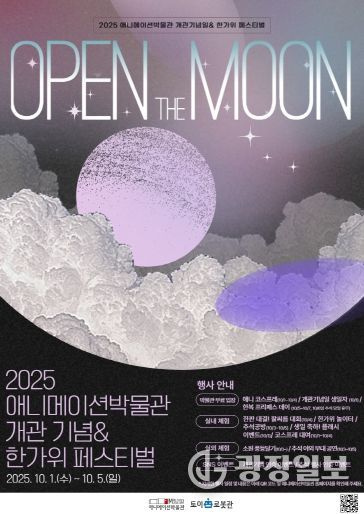 애니메이션박물관장은 “올해 ‘오픈 더 문(Open the Moon)’은 단순한 추석 명절 프로그램을 넘어, 애니메이션과 전통이 만나 세대와 지역을 잇는 문화 축제로 기획했다”며, “박물관을 찾는 가족들이 올 가을 특별한 시간을 보내며 오래도록 기억할 추억을 만들어 가길 바란다.”고 전했다.