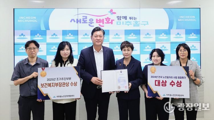 광장일보 주재영 기자 | 인천 미추홀노인인력개발센터(센터장 김태화)는 지난 22일 웨스턴조선서울에서 열린 ‘2025년 노인 일자리 주간 기념식’에서 보건복지부 장관 표창이자 최고 영예인 ‘대상’을 수상했다.