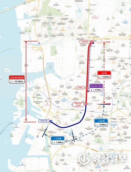 광장일보 주재영 기자 | 인천광역시는 인천대로 일반화 도로개량공사를 1-1단계인 인천기점~독배로, 1-2단계 독배로~주안산단고가교, 그리고 2단계인 주안산단고가교~서인천IC로 세분화했으며, 오는 10월 2단계 구간을 착공해 전체 사업을 본격적으로 추진한다고 밝혔다.