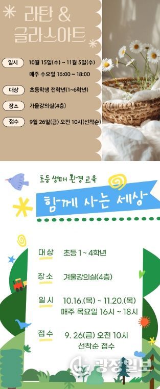 참여 신청은 9월 26일 오전 10시부터 신트리도서관 누리집에서 가능하며, 자세한 사항은 마을교육지원과로 문의하면 된다.