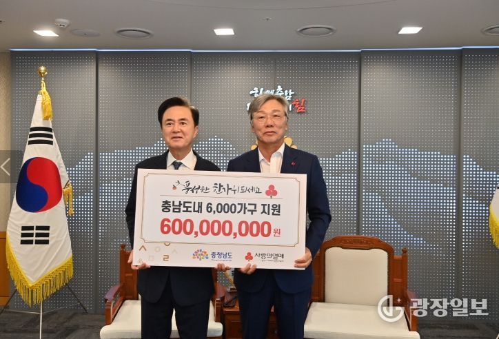 광장일보 주재영 기자 | 충남도는 24일 충남사회복지공동모금회로부터 추석 명절 이웃돕기 성금 6억원을 전달받았다고 밝혔다.
