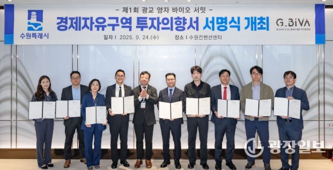 김현수 제1부시장은 “오늘 서명식은 수원시가 지향하는 바이오·AI(인공지능) 혁신 생태계의 출발점”이라며 “기업의 투자는 수원의 미래를 함께 열어가는 동력이 될 것”이라고 말했다.