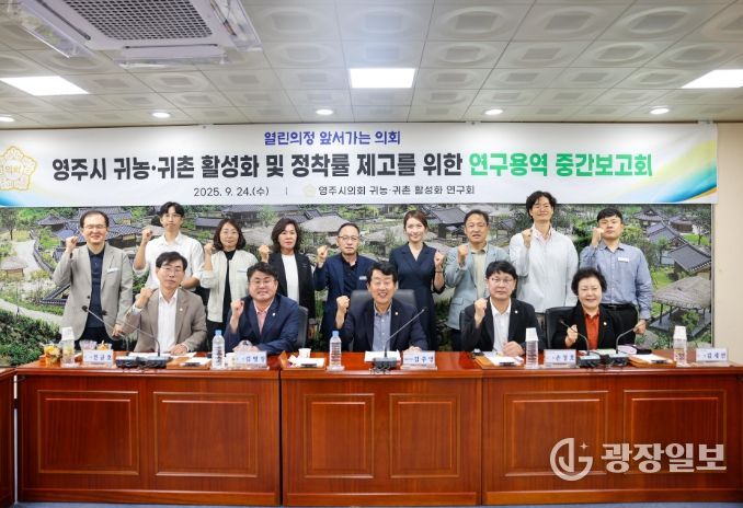광장일보 주재영 기자 | 영주시의회 의원연구단체인‘귀농·귀촌 활성화 및 정착률 제고를 위한 방안 연구회’(대표의원 김주영)는 9월 24일 영주시의회 소회의실에서 연구용역 중간보고회를 열고, 귀농·귀촌인의 안정적 정착을 위한 정책 대안을 모색했다.