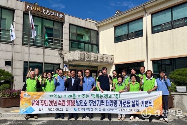광장일보 주재영 기자 | 서천군 서면은 지난 23일, 신서천발전본부와 서면주민자치회 간 4천만원 규모의 태양광 가로등 설치사업 지원을 위한 기념식을 가졌다고 밝혔다.
