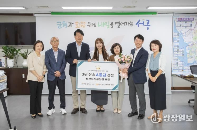 광장일보 주재영 기자 | 인천 서구는 서구치매안심센터가 지난해에 연이어 2025년 2주기 치매안심센터 운영평가에서 전국 상위 10%에 해당하는 ‘A등급’ 기관으로 선정되어, 지난 23일 ‘인천치매극복의 날 기념행사’에서 보건복지부장관 표창을 받았다고 밝혔다.