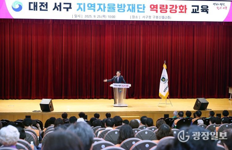 광장일보 이현나 기자 | 대전 서구은 이달 25일 구청 구봉산홀에서 지역자율방재단 역량 강화 교육을 진행했다.