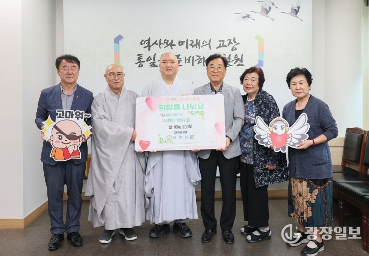 광장일보 이현나 기자 | 심원사에서 추석 명절을 맞아 지난 24일 철원군청을 방문하여 사랑의 이웃돕기 동참의 뜻을 밝히며 500만원 상당의 철원오대쌀(10kg) 200포를 기탁했다.