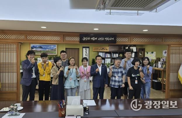 광장일보 주재영 기자 | 논산시는 23일 관내 직업재활 시설인 ‘논산발그래일터’ 하주현 이사장과 종사자, 소중한사람들 근로자 7명을 초청해 소통의 자리를 마련했다.
