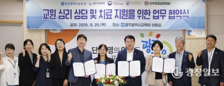 광주시교육청은 25일 본청 상황실에서 광주기독병원, 국립나주병원, 동명병원, 천주의 성요한병원 등 4곳과 ‘교원의 마음건강 증진을 위한 업무협약’(MOU)을 체결했다.