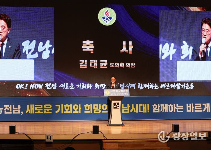광장일보 주재영 기자 | 김태균 전남도의장은 9월 25일 전남도청 김대중강당에서 개최된 ‘2025 바르게살기운동 전남회원대회’에 참석하여 아름다운 전남만들기를 위해 노력해 온 유공회원에게 표창을 수여하고 축사와 함께 격려했다.