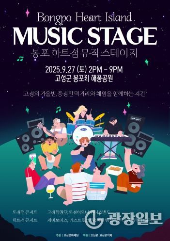 고성문화재단 관계자는 “도시에 없는 낭만을 표방하는 봉포하트섬 뮤직 스테이지는 고성 남부권만의 특색과 감성을 담아 누구나 즐길 수 있는 음악공연”이라며 “가을밤 해풍공원에서 많은 분이 함께해 주시길 바란다.”라고 전했다.