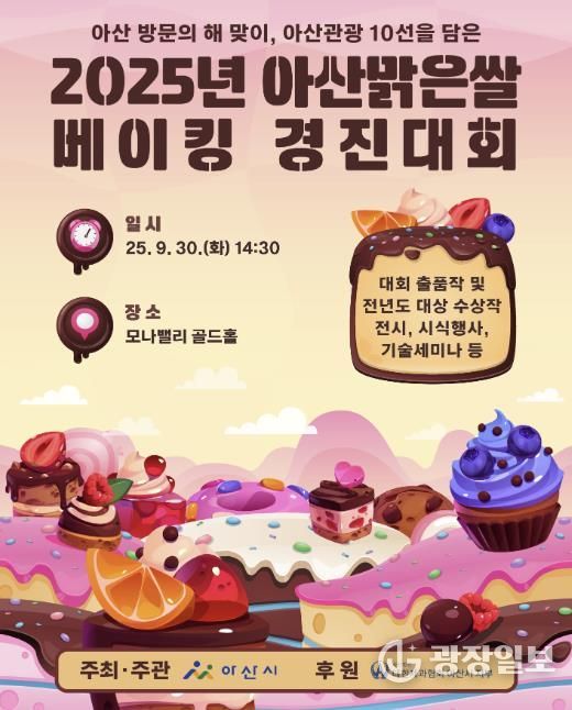 광장일보 주재영 기자 | 아산시는 오는 30일 아산 모나밸리 골드홀에서 ‘아산 방문의 해’를 맞아 ‘2025년 아산맑은 쌀 베이킹 경진대회’를 개최한다.