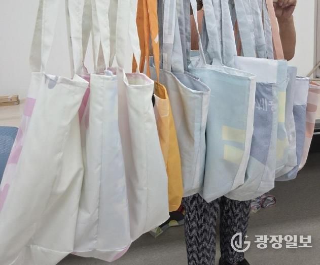 특히, 지난 8월 20일부터 9월 19일까지 1개월간 폐현수막 약 2.4t으로 마대 3,000매 정도를 제작했으며, 9월 22일부터 26일까지는 장바구니용 가방을 제작해 탈춤축제 기간 중 축제장 내 기후위기대응 탄소중립실천 홍보부스에서 시민과 관광객에게 배부할 계획이다.