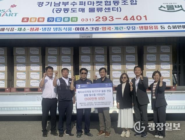 경기남부수퍼마켓협동조합은 지난 9일 행정안전부 스마트복지안전공동체추진단, 중소기업중앙회사랑나눔재단, 한국수퍼마켓협동조합연합회와 업무협약을 체결하고, 민관이 함께 위기가구 지원체계를 강화하기로 약속했다. 이번 기부는 업무협약의 하나로 이뤄졌다.
