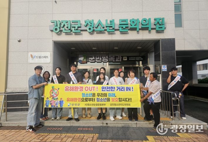 광장일보 주재영 기자 | 강진군이 2학기 개학기를 맞아 지난 17일 오후 5시부터 8시까지 학교 주변과 학원가 등 청소년 우범지역을 대상으로 유해환경 합동 점검․단속 활동을 실시했다.