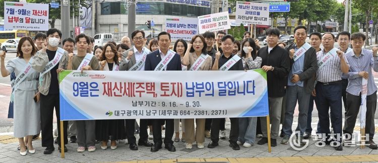 광장일보 주재영 기자 | 대구 남구는 지난 24일(수) 남구청 네거리에서 2025년도 정기분 재산세 납부의 달을 맞아 지방세 홍보 캠페인을 실시했다.
