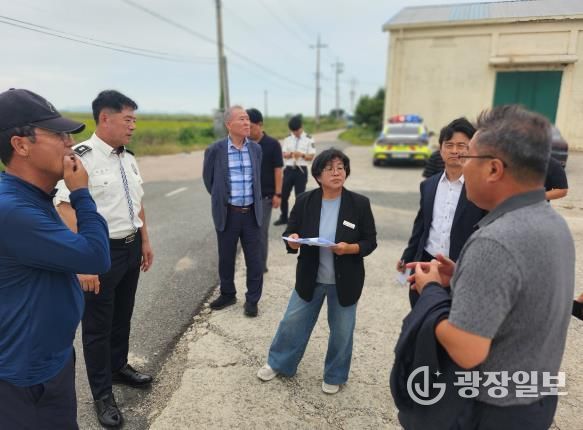 광장일보 주재영 기자 | 전라남도의회 오미화 의원(진보당·영광2)은 지난 9월 24일, 영광군 내 교통안전 취약 구간인 칠곡삼거리와 염산초등학교~양일마을 구간(국도77호선)을 방문해 현장 점검을 실시하고 실질적인 개선 방안 마련을 모색했다.