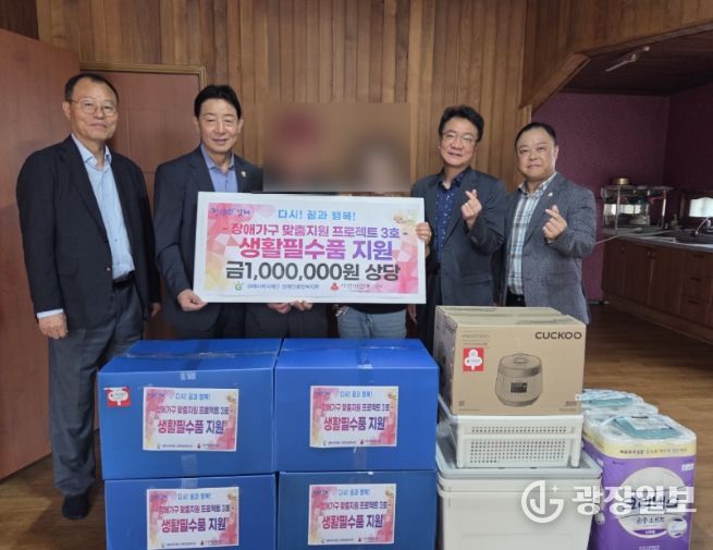 광장일보 주재영 기자 | (재)김해시복지재단김해시장애인종합복지관은 지난 25일, 장애가구 맞춤 지원 프로젝트 『Well-Life: 잘살아보세!!』와 관련하여 생활필수품 전달식을 진행했다.