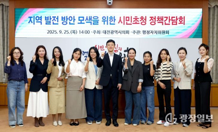 광장일보 이현나 기자 | 대전시의회 25일 시의회 소통실에서 이중호 의원(국민의힘, 서구 5) 주재로 ‘지역 발전 방안 모색을 위한 시민초청 정책간담회’를 개최했다.