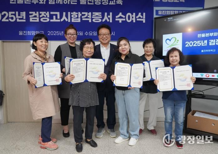 광장일보 주재영 기자 | 울진희망학교는 지난 9월 24일 울진종합터미널 2층 교실에서‘2025년 검정고시 합격증서 수여식’을 가졌다.