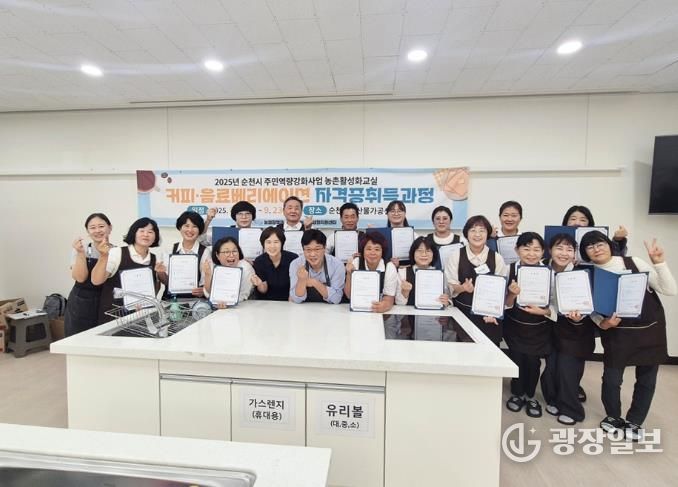 광장일보 주재영 기자 | 순천시는 농촌 주민들의 역량을 강화하고 소득 창출을 위해 추진한 ‘커피음료 베리에이션 자격증 취득 과정’을 지난 23일 마무리했다고 밝혔다.