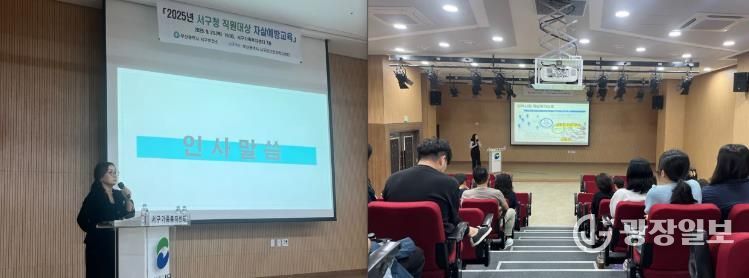 교육은 서구정신건강복지센터 전문 강사가 맡아 자살 문제 현황과 이해, 위험 요인과 경고 신호, 위기 상황별 대응 방법 등을 소개하며 실질적인 대응 역량 강화를 도왔다.