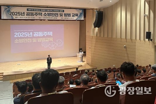 광장일보 주재영 기자 | 광주 광산구는 26일 수완문화체육센터에서 지역 의무 관리 대상 공동주택 193단지의 시설물 안전관리책임자, 경비책임자 160여 명을 대상으로 소방안전 및 방범 교육을 했다고 밝혔다.