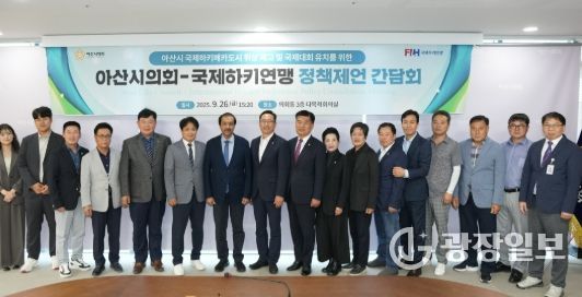 광장일보 주재영 기자 | 아산시의회가 25일 오후 3시 30분 의회동 다목적회의실에서 이크람 모하마드 타이야브(IKRAM MOHAMMAD TAYYAB) 국제하키연맹(FIH) 회장과 아산시 하키 발전과 세계대회 유치 방안 제언을 위한 간담회를 개최했다.