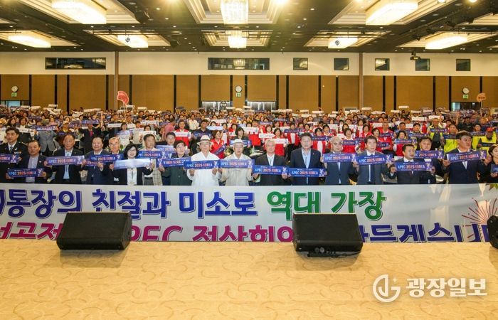 이동건 경주시 이·통장연합회장은 “주민과 가까이에서 시정 발전을 위해 헌신해 온 이·통장들의 노고에 감사드린다”며 “668명의 이·통장이 친절과 미소로 손님을 맞아 2025 APEC 정상회의 성공 개최에 힘을 보태자”고 말했다.