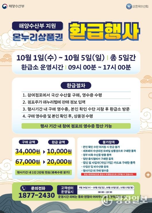 이번 행사는 추석 성수품으로 수요가 많은 국산 수산물 구매 부담을 완화하고 지역 소비 활성화를 도모하기 위해 마련됐다.