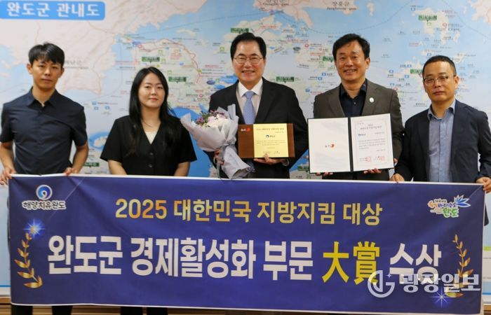 광장일보 주재영 기자 | 완도군은 지난 24일 서울 한국프레스센터에서 열린 ‘2025 대한민국 지방 지킴 대상’ 시상식에서 경제 활성화 부문 대상을 수상했다.