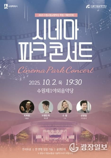 광장일보 나학천 기자 | 수원특례시는 10월 2일 오후 7시 30분 수원제1야외음악당에서 ‘시네마 파크 콘서트’를 연다.