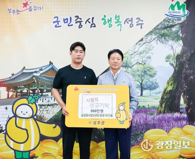 광장일보 주재영 기자 | 농업회사법인 천우(대표 이기훈)은 9월 29일 성주군청을 방문해 취약계층을 위한 성금 5백만 원을 경북사회복지공동모금회에 전달했다.