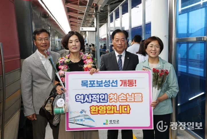 갑작스런 다른 일정으로 현장에 함께 하지 못한 강진원 강진군수는 “100년 넘게 기다려온 철도가 오늘 강진 땅에 도착했다”며 “이 역사적인 순간을 함께하는 첫 손님들께 군민들의 따뜻한 환영을 전하고 싶다. 앞으로 기차 개통을 발판으로 관광과 지역경제가 더욱 활기를 띨 것”이라고 강조했다