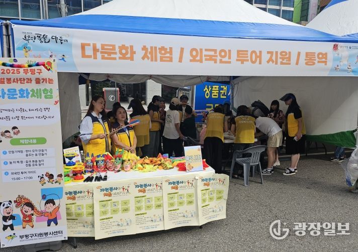 광장일보 주재영 기자 | 부평구 자원봉사센터는 지난 27일~28일 양일간 부평대로에서 진행된 부평풍물축제에서 ‘하모니 봉사·그린플래너’ 부스를 공동 운영했다.
