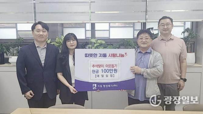 광장일보 나학천 기자 | 지난 26일, ㈜대일실업은 추석 명절을 맞아 어려운 이웃을 위해 사용해 달라며 현금 1,000,000원을 지동 행정복지센터에 기탁했다.