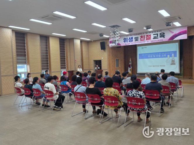 광장일보 주재영 기자 | 고성군은 9월 25일 회화면사무소 2층 회의실에서 2025 경남고성공룡세계엑스포 입점업체와 회화면 소재 음식점 종사자를 대상으로 위생·친절 교육을 실시했다.