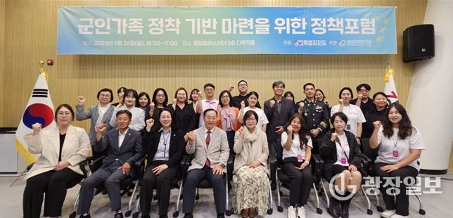 광장일보 이현나 기자 | 강원특별자치도는 도 지역소멸대응정책관과 도 여성가족연구원(원장 김숙영)이 공동 주관하여 9월 26일 통일플러스센터에서 '군인가족 정착 기반 마련을 위한 정책포럼 포럼'을 개최했다.