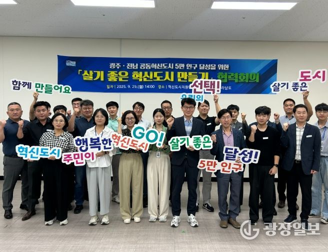 광장일보 주재영 기자 | 전라남도와 나주시는 29일 광주·전남 공동혁신도시 정주인구 5만 달성을 위한 ‘살기 좋은 혁신도시 만들기’ 협력 회의를 개최하고, 혁신도시 정주 여건 개선을 위한 다양한 방안을 강구했다고 밝혔다.