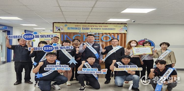 광장일보 주재영 기자 | 인천광역시는 인천시공무원노동조합과 함께 오는 9월 29일 본청 지하 구내식당 앞에서 추석맞이 청렴캠페인을 개최했다고 밝혔다.