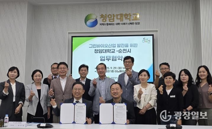 광장일보 주재영 기자 | 순천시가 29일 청암대학교 청암관에서 청암대학교와 그린바이오 산업육성을 위한 업무협약을 체결했다고 밝혔다.