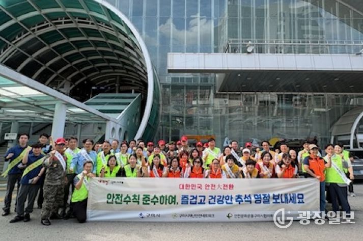 광장일보 주재영 기자 | 구미시는 한가위를 맞아 9월 29일 구미역 일원에서 ‘제334차 안전점검의 날’ 캠페인을 펼쳤다. 이날 행사에는 재난안전네트워크 회원 100여 명이 참여해 귀성객과 시민들에게 생활 속 안전수칙을 알렸다.