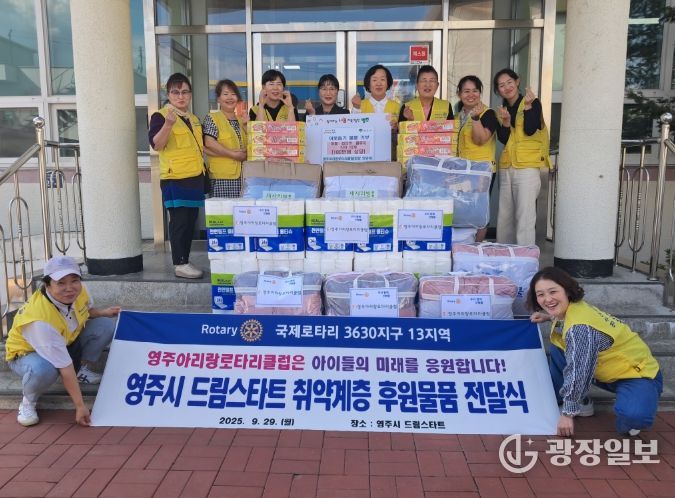 광장일보 주재영 기자 | 영주아리랑로타리클럽(회장 안외숙)이 추석을 맞이하여 29일 영주시드림스타트에 이불·화장지·컵라면등 100만 원 상당의 물품을 전달했다.
