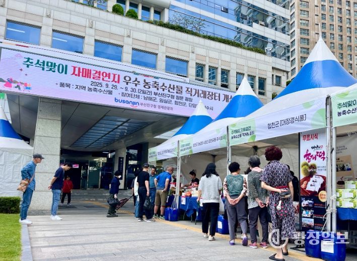 광장일보 주재영 기자 | 부산진구청이 주최하는 ‘추석맞이 농축수산물 직거래장터’가 9월 29일부터 9월 30일까지 부산진구 정문광장에서 열리고 있다.