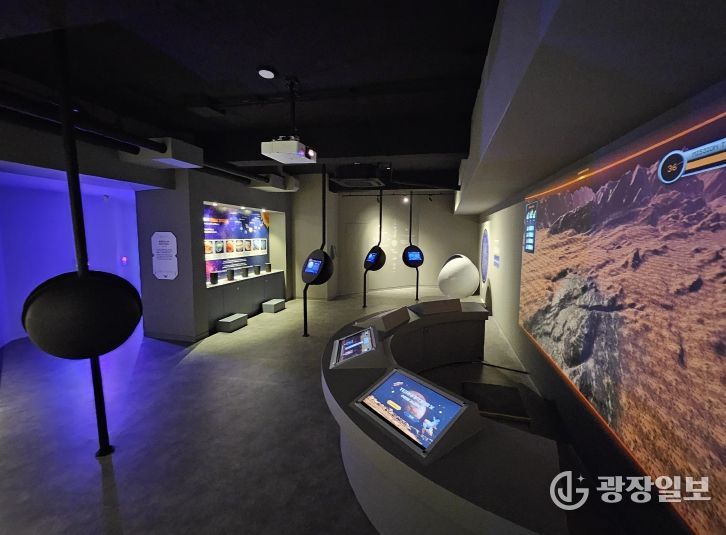 동해시청소년수련관 1·2층 일부(약 615㎡) 공간을 활용해 전시실과 체험실 등 우주를 주제로 한 다양한 전시·체험 콘텐츠를 한곳에서 즐길 수 있도록 조성됐다.