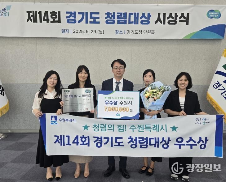 광장일보 나학천 기자 | 수원특례시가 제14회 경기도 청렴대상에서 우수상으로 선정됐다. 시상식은 29일 경기도청 단원홀에서 열렸다.