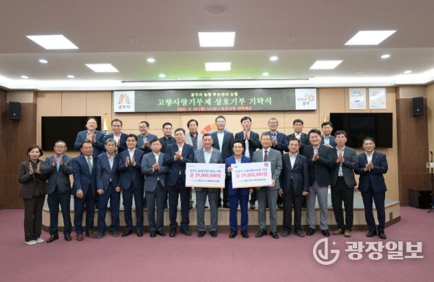 광장일보 주재영 기자 | 논산시는 29일 공주시청 대백제실에서 공주시 및 양 시 농협 관계자들과 함께 ‘고향사랑기부금 상호 기탁식’을 개최했다고 밝혔다.