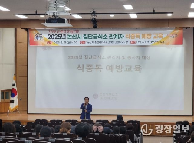 광장일보 주재영 기자 | 논산시는 29일 종합사회복지관에서 학교·복지시설·산업체 등 집단급식소 관계자 200여 명을 대상으로 식중독 예방 교육을 실시했다.